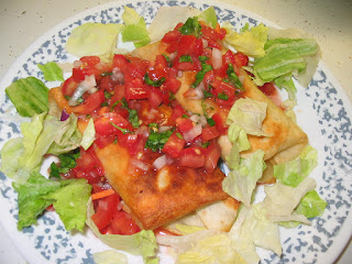 Spread each tortilla with some of the smashed beans, then add some ground beef mixture being careful not to overfill. Next add some cheese and roll up the tortillas by folding in sides then folding ends over. When finished folding, heat enough oil in a skillet to come half way up 'changa's and fry them till golden-brown. Serve with some lettuce and salsa.